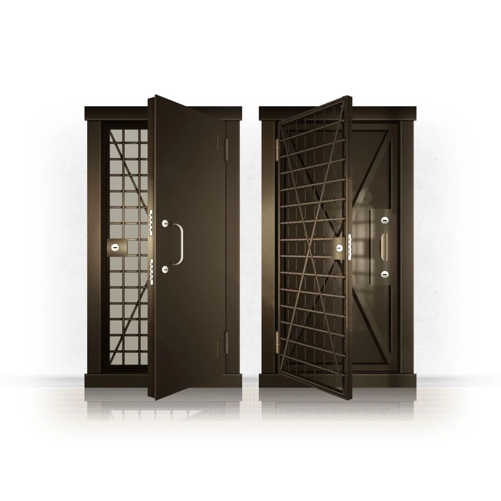 Металлические двери КХО и КХН представляют собой входные блоки, обладающие высоким уровнем взломостойкости и состоят из трех основных элементов: усиленного каркаса, сплошного металлического полотна и решетчатой двери. Дверной блок изготавливается из стального уголка 100*100 мм. Места крепления блока к стене цементируются и закрываются стальными наличниками шириной 40 мм. Крепеж заходит вглубь стены на 80 мм. В конструкции внешней створки монтируются ребра жесткости, для обшивки используется сталь толщиной не менее 3 мм. Внутренняя решетка изготавливается из прутка диаметром 16 мм. Размер ячеек решетки должен составлять не более 15 на 15 см. В точках пересечения прутья надежно приваривают друг к другу. В КХО и КХН необходимо поддерживать определенную температуру и влажность. Для этого внутреннее пространство глухой двери заполняется теплоизоляционным материалом, а по периметру двери приклеивается уплотнитель. Такие двери оборудуются замками с повышенным уровнем взломостойкости. Специализированные двери КХО и КХН в Миассе могут быть оснащены сигнализацией, в конструкции могут быть проушины для навесного замка и элементами для опечатывания. Если идет речь о двери в комнату хранения оружия, в створке оборудуется окно для выдачи оружия и спец. средств, которое накрывается стальной дверцей.
