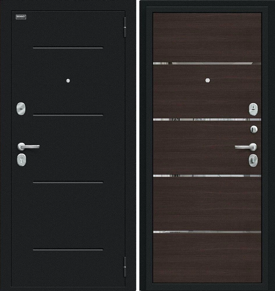 Надежная входная Дверь Браво Лайн Букле черное/Wenge Veralinga премиум класса по цене 30 261 руб. Большая толщина стали защитит от проникновения в ваш дом, квартиру или коттедж. Используется очень качественная фурнитура: замки, цилиндры, ручки, защелки. Покрытие и отделка двери изготовлено под внимательным контролем производителя. Дверь имеет долгий срок службы и гарантию.