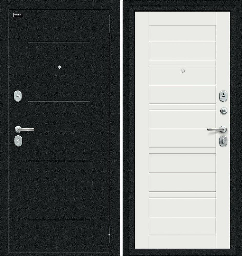 Надежная входная Дверь Браво Сити Kale Букле черное/Off-white премиум класса по цене 36 661 руб. Большая толщина стали защитит от проникновения в ваш дом, квартиру или коттедж. Используется очень качественная фурнитура: замки, цилиндры, ручки, защелки. Покрытие и отделка двери изготовлено под внимательным контролем производителя. Дверь имеет долгий срок службы и гарантию.
